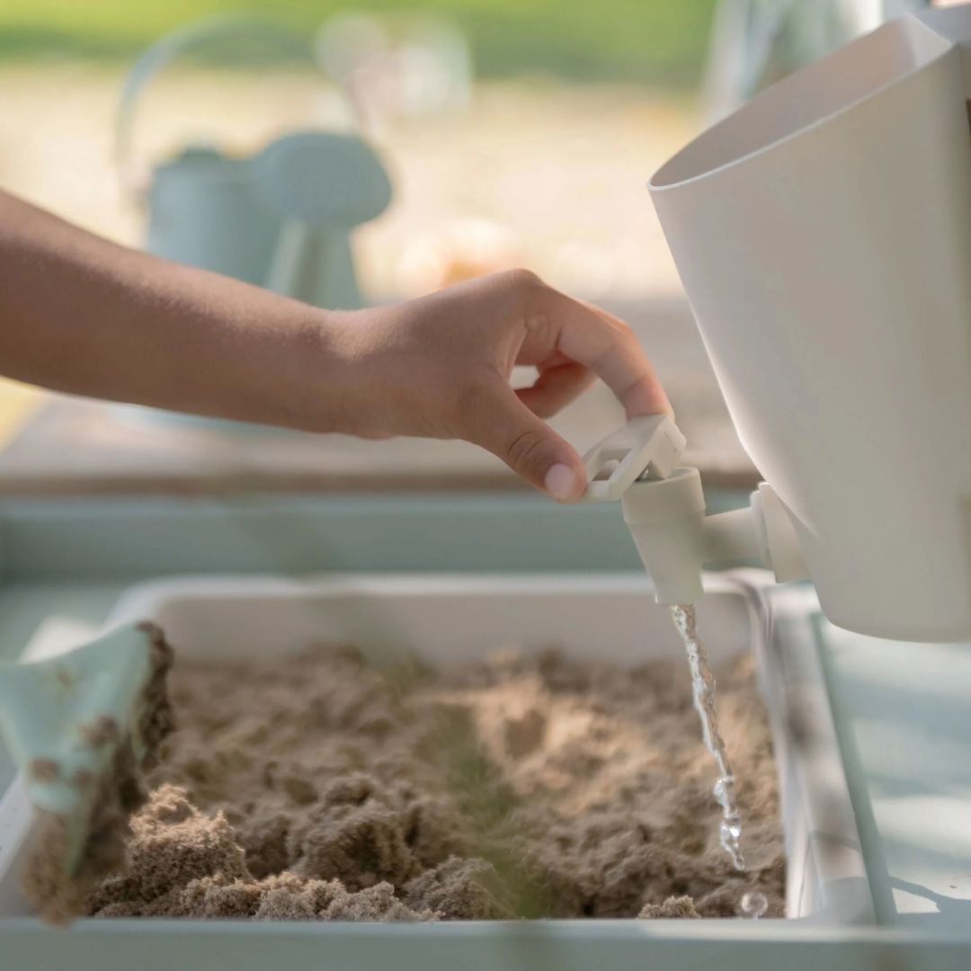 Kuhinja je opremljena z vsem, kar mali mojstri potrebujejo za svojo zunanje ustvarjanje. Vključuje vrtljive gumbe za pristen občutek kuhanja, dve pomivalni koriti za pripravo sestavin in pravo pipo z rezervoarjem, ki omogoča uporabo prave vode za še bolj realistično igro.